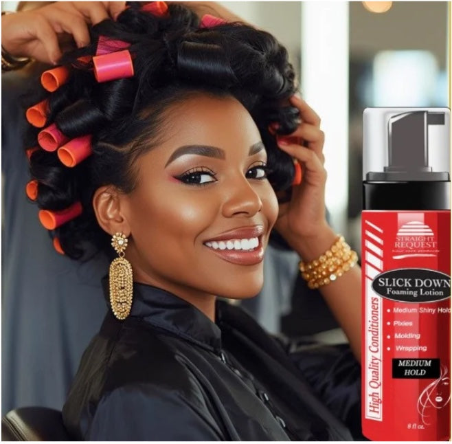 The NEW Slick Down Medium Hold Foaming Lotion when you need just a little bit more memory in your style. PERFECT for fingerwaves, rollersets, wash and go styles, and molding.